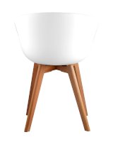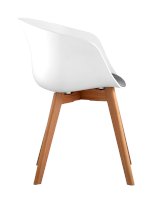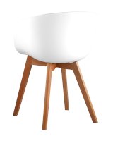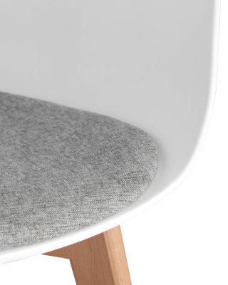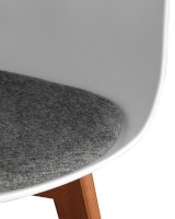 Сидение выполнено из пластика, который отличается повышенной износостойкостью, с подушкой. Деревянные неокрашенные ножки из массива придают устойчивость конструкции. Съемная подушка.