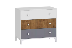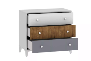 Комод «Морти» - прекрасный выбор для интерьера в стиле Современный, Модерн, Скандинавский. Три удобных выдвижных ящика станут вместительным место для хранения белья, предметов одежды и аксессуаров. В оттеночной гамме мебели царит стильное сочетание современности, изюминкой модели являются цвета ящиков: белый, серый и дуб бунратти.