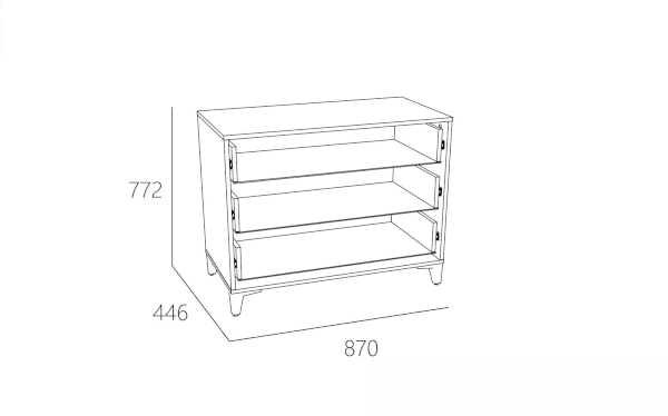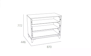Выдвижные ящики оснащены шариковыми направляющими полного выдвижения, равномерно распределяют вес содержимого и обеспечивают плавный бесшумный ход ящика. Высокие опоры зрительно облегчают конструкцию и более удобны для уборки. Комод отлично сочетается с другими моделями коллекции «Морти».