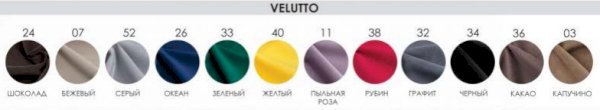 Обивка: Ткань (Велюр Боска), Ткань (Велюр Velutto), Ткань (Велюр Nova), Ткань (Велюр Grand)