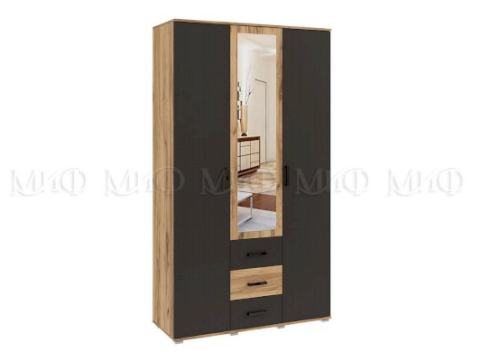 Шкаф 3-х створчатый Графит/Дуб крафт